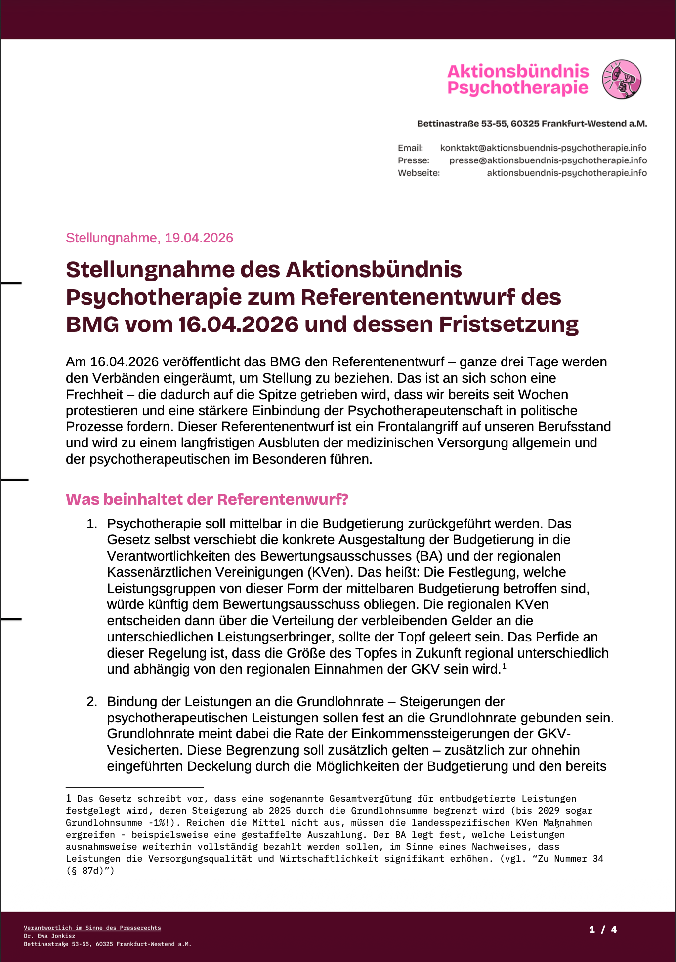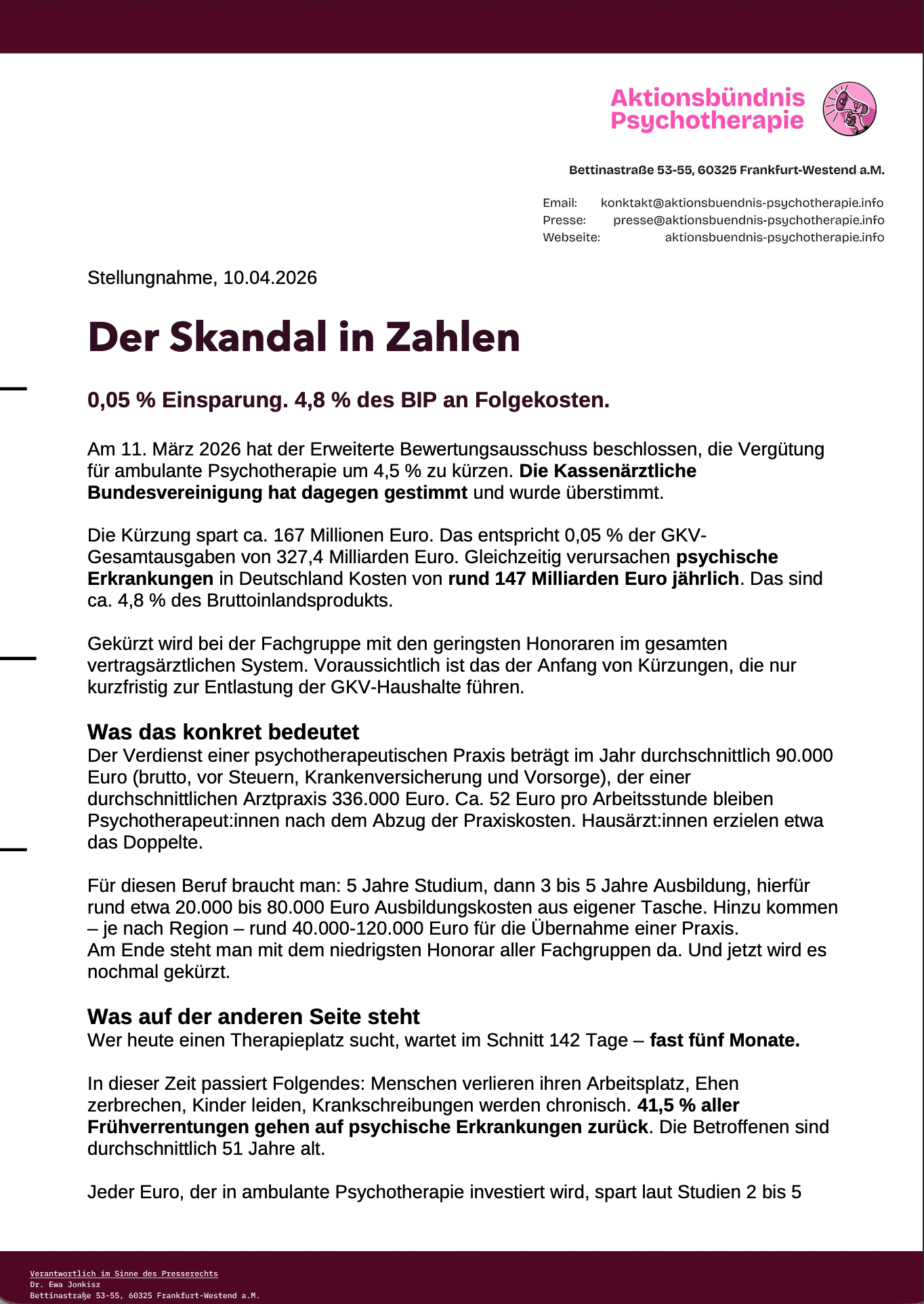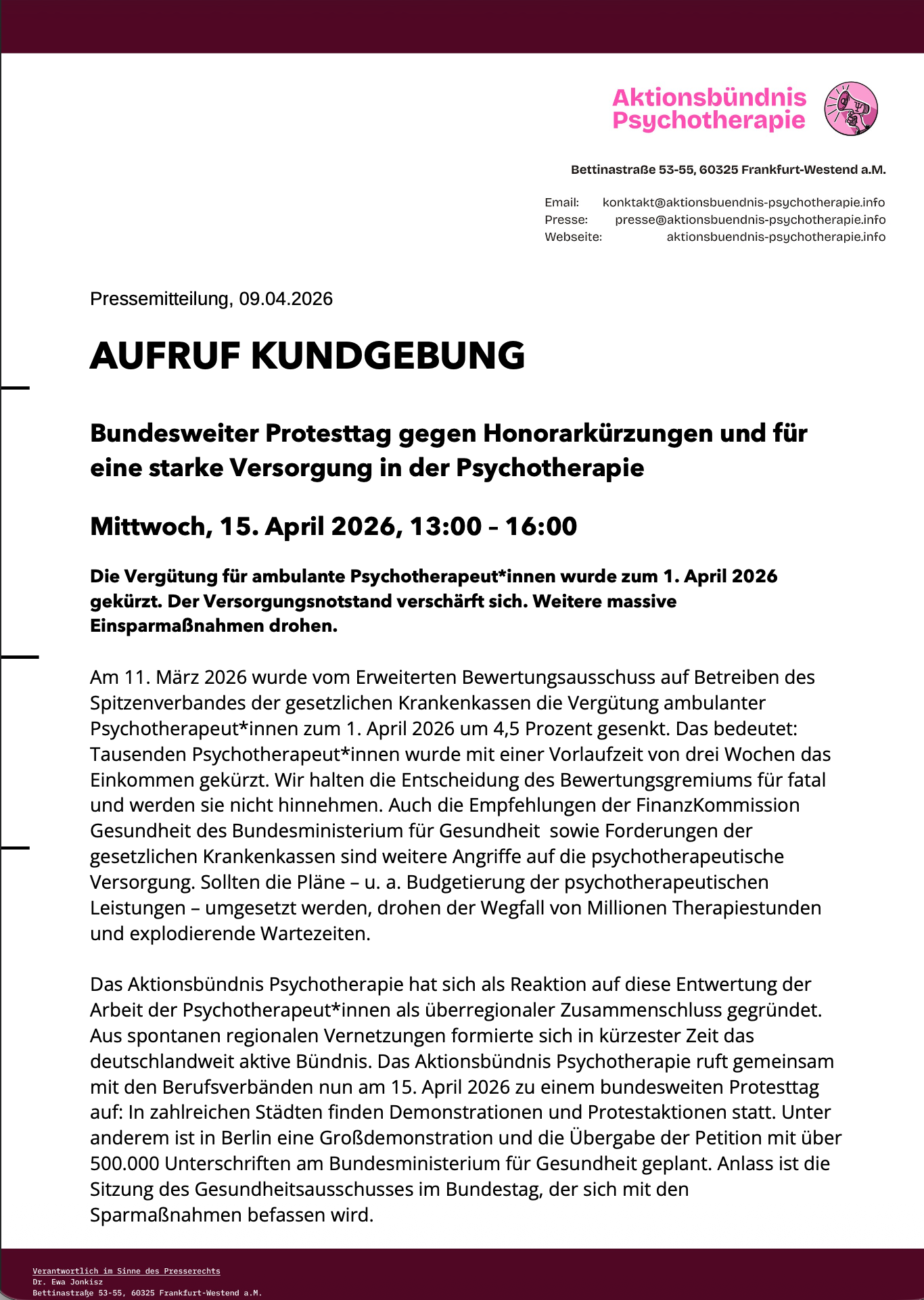 Proteste gegen Kürzungen in der Psychotherapie in Berlin und weiteren Städten